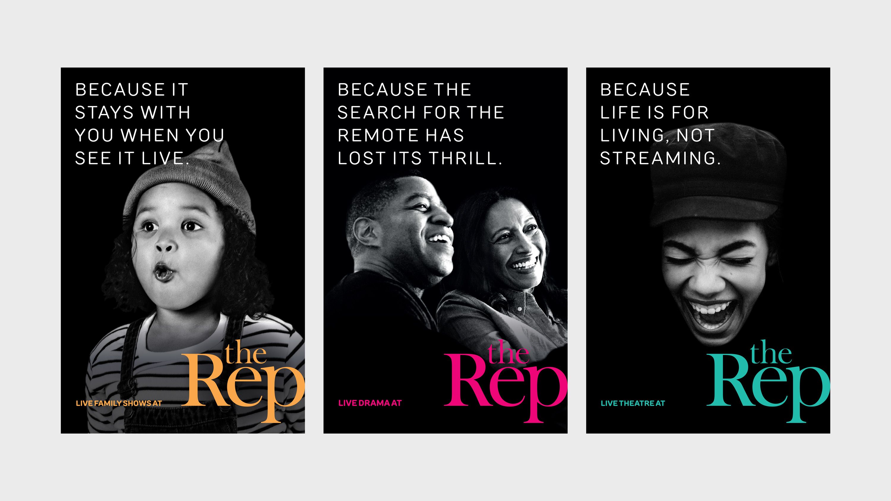 The Birmingham Repertory Theatre asked Rose to develop a confident and flexible brand identity for the theatre, to reflect the quality of its artistic programming and diversity of local communities. They asked us to help capture the imagination of new audiences – post pandemic – in delivering a revitalised and cohesive experience across all three performance spaces in their central Birmingham venue, whilst retaining the loyalty of their existing customer base. Another key part of their brief to Rose, was to ensure touring productions could deliver an equally consistent audience experience, when they inherit third party artwork from partners.